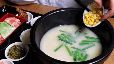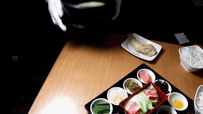 將配菜一一倒入滾燙的高湯里,