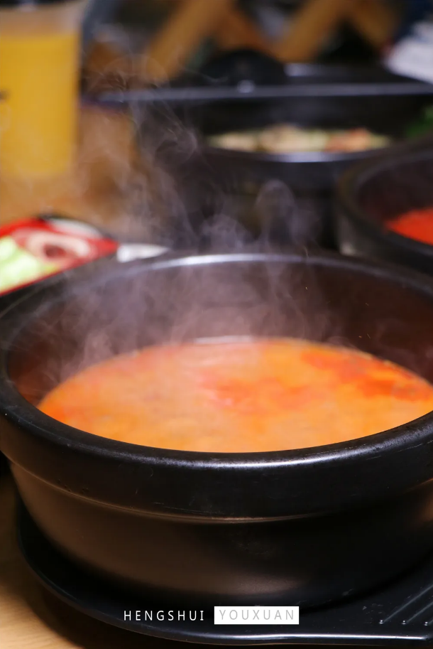 300°C的石鍋噗滋冒著熱氣,