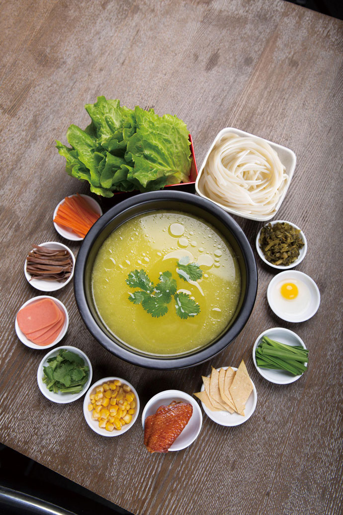 十秒到過橋米線的高湯是用大骨、老母雞、云南宣威火腿經長時間熬煮而成,采集骨湯精華。其中湯底分為味重色濃香辣的麻辣湯底和清淡醇香的清湯底。米線及其它輔料均采用上等食材,米線口感滑潤有勁道,配以嚴格甄選的上等新鮮蔬菜、肉片等輔料。味香而不油膩、鮮美卻不燥舌。米線還可以免費續哦!讓你只點一次,享受到極致!